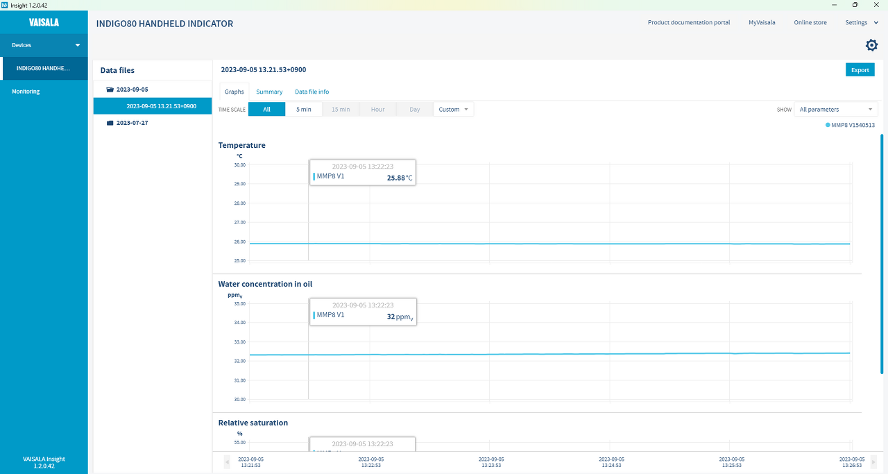 Vaisala Insight 소프트웨어를 사용하여 모니터링 및 저장된 데이터 확인, 보고서 생성이 가능합니다.