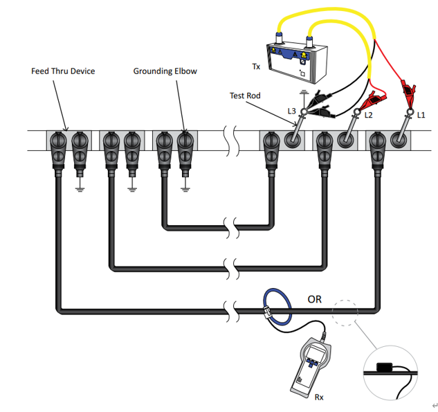 신호 송신부 (TX) 는 L1, L2채널이 함께 출력되고, 신호 감지부 (RX) 를 사용하여 L1, L2 케이블을 쉽게 찾을 수 있습니다.