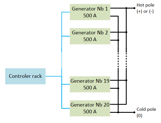 예) 20개의 generator 를 연결하면 10,000ADC 는 연속 사용 가능하고, 24,000ADC 는 1분간 사용 가능합니다.
