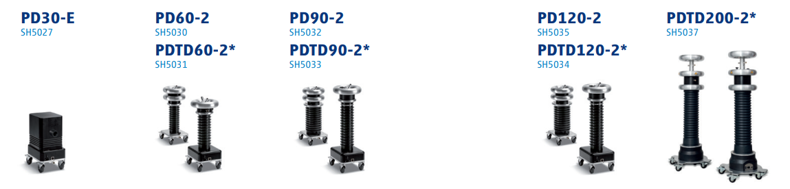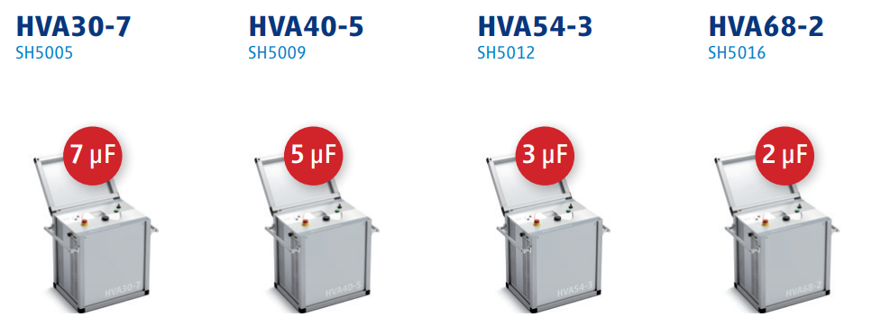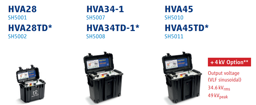 HVA60 또는 HVA68-2 모델은 44kVrms 까지 출력 가능하여 22.9kV 배전케이블의 내전압시험 전압인 3U0 (39.6kV) 까지 출력 가능하며 PDTD60-2 와 결하면 TD (DTD), PD, MWT 가능합니다.