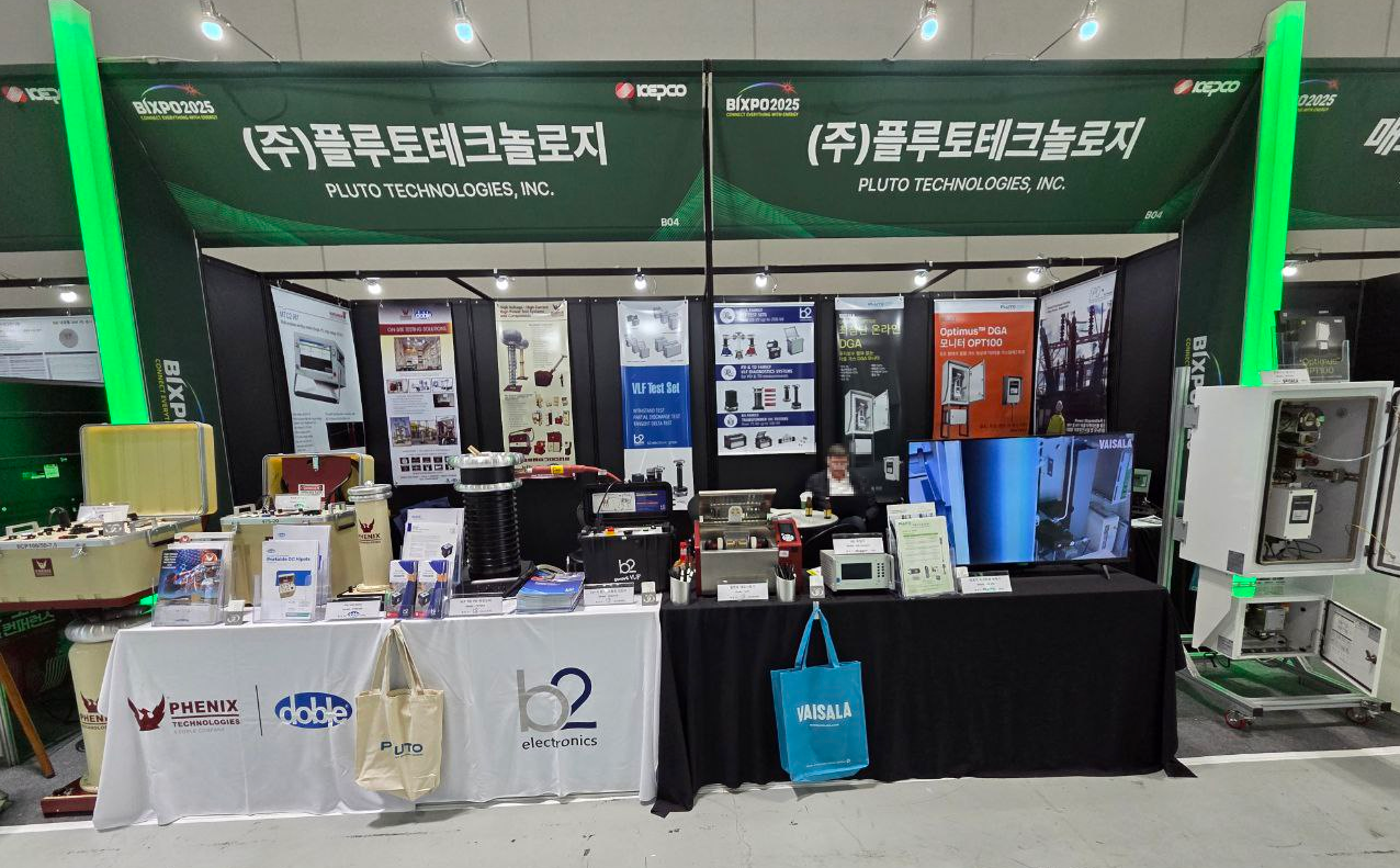 25년 11월 5~7일까지 광주 김대중컨벤션센터에서 열리는 2025 BIXPO에 참가 중 입니다.아래 제품 전시 중으로 많은 방문 부탁 드립니다. (부스번호 B04)1. Vaisala OPT100 (온라인 유중가스 분석기) wall mount 형으로 변압기 벽에 고정설치하는 타입2. Schleich MTC2 R7 (회전기 surge 시험기, PD, 권선저항, 절연저항, Capacitance, Inductance 측정장비)3. b2 HVA28TD, PDTD68 (케이블 VLF 시험기, TD, PD 시험기) 외4. Doble 100kVAC Hipot (AC 내전압시험기), KVM (kV전압 측정기)5. Megger AIAcompact (PD 시험기)6. Dynamicratings B100 (ETM 변압기 온..